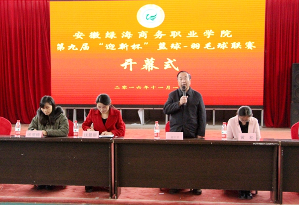 最后,戴昭慰宣布安徽綠海商務(wù)職業(yè)學院第九屆籃球、羽毛球聯(lián)賽開幕。