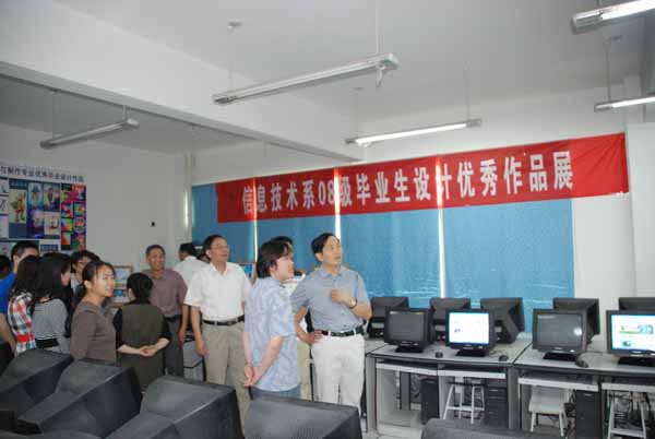 為展示我院信息技術系08級畢業(yè)生的學習成果,6月16日上午,信息技術系在機房六教室舉辦了“2008級畢業(yè)生優(yōu)秀作品展”。我院董事長陳孝云、院長蔣玉珉、常務副院長丁元生、副院長計承光及相關部門的負責人親臨了展出現(xiàn)場。