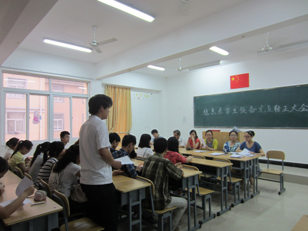2011年6月10日,信息技術(shù)系黨總支分別在科技樓信息技術(shù)系辦公室和教學(xué)樓201教室召開預(yù)備黨員轉(zhuǎn)正大會,信息技術(shù)系黨總支副書記邢江淮、黨支部書記任婷婷、團(tuán)總支書記吳昊、所有教師黨員和學(xué)生預(yù)備黨員、以及發(fā)展對象出席此次會議。