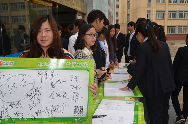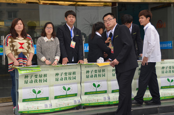 活動剛開始,同學們的熱情度就很高。院學生會成員分別在教學樓的主道、宣傳欄、體育館、綜合樓以及宿舍樓周圍,向路過的同學宣傳“簽名送種子”,吸引師生紛紛駐足觀看、領取種子。