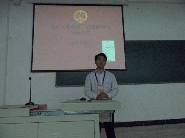 張緒川副書記在講話中指出,黨課的學(xué)習(xí)是入黨程序中重要的環(huán)節(jié),他希望全體學(xué)員一要擺正心態(tài),明白作為入黨積極分子的意義;二要端正學(xué)習(xí)態(tài)度,認(rèn)真主動(dòng)遵守黨課學(xué)習(xí)的紀(jì)律,嚴(yán)肅認(rèn)真對待此次培訓(xùn);三要虛心學(xué)習(xí),正視自身的差距,端正學(xué)習(xí)態(tài)度;四要珍惜此次學(xué)習(xí)的機(jī)會(huì),端正入黨動(dòng)機(jī)。他強(qiáng)調(diào)了大學(xué)生黨課培訓(xùn)的重要意義,對全體學(xué)員提出了明確的要求和今后努力的方向,同時(shí)還做了以“端正入黨動(dòng)機(jī),做一名合格的大學(xué)生員”為主題的黨課培訓(xùn)班第一講。