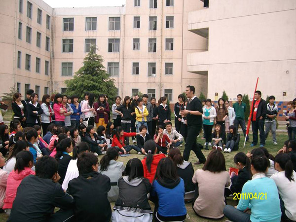 為增強(qiáng)學(xué)生的英語(yǔ)聽(tīng)說(shuō)和口語(yǔ)能力,4月21日下午,由外語(yǔ)系商務(wù)英語(yǔ)教研室和大學(xué)英語(yǔ)教研室共同舉辦的英語(yǔ)角活動(dòng)在科技樓前文化長(zhǎng)廊舉行。外語(yǔ)系副主任童傳富、外籍教師Bob先生、商務(wù)英語(yǔ)教研室主任吳麗、大學(xué)英語(yǔ)教研室孫斌、教學(xué)秘書(shū)徐朔老師等與學(xué)生們一起參加了此次實(shí)踐活動(dòng)。