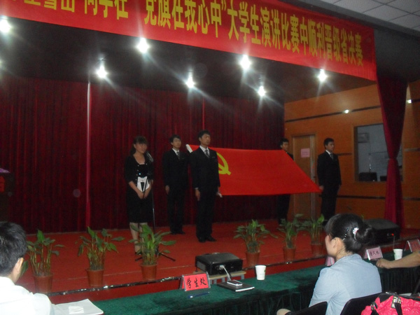 胡菁菁同學(xué)在《鮮紅的黨旗,赤誠的心》演講中,大膽嘗試加入了黨旗交接環(huán)節(jié),博得了評委的認(rèn)可和肯定。王雪山同學(xué)的《學(xué)習(xí)沈浩,扎根基層》氣宇軒昂,語調(diào)鏗鏘、嚴(yán)肅激進(jìn),十分振奮人心。