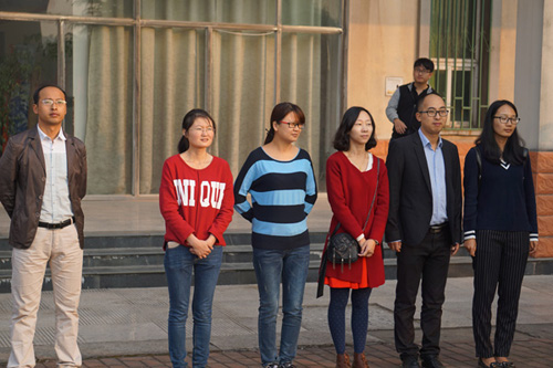 10月19日清晨,學院信息系在科技樓門前廣場舉行學院2015-2016學年第一學期第二次升旗儀式。學生處副處長朱小明、信息系黨總支副書記張世民及信息系全體教師參加活動。