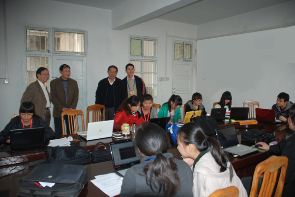 11月2日下午,學(xué)院常務(wù)副院長丁元生、教務(wù)處處長杜俊林、副處長王欣、信息系主任朱金付等領(lǐng)導(dǎo)來到第六屆全國信息技術(shù)應(yīng)用水平大賽的臨時集訓(xùn)營,看望了正在積極備戰(zhàn)復(fù)賽的十余名指導(dǎo)教師和學(xué)生。