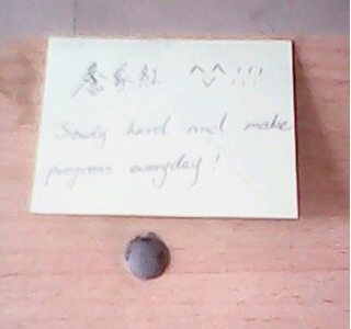 對于陳超的精彩講話,全班同學(xué)給予肯定的回答并報以熱烈的掌聲。然后同學(xué)們在班委的手上領(lǐng)取便利紙,找到自己喜愛的位子,將便利紙貼在桌子的左角上。并承諾認(rèn)真維護(hù)自己的課桌,使其無垃圾、無損壞。