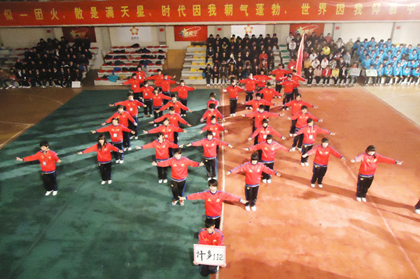 參賽班級(jí)喊著振奮人心的口號(hào)步入賽場(chǎng)。裝潢111班擺出“金字塔”陣形,彰顯著堅(jiān)固力量,由計(jì)網(wǎng)111班帶來(lái)的《向前沖》,演繹青春之風(fēng)采,動(dòng)感十足。尤其是計(jì)多111班和網(wǎng)管111班,他們以別出心裁的開(kāi)場(chǎng)方式讓評(píng)委和老師們耳目一新。網(wǎng)管111班級(jí)的表演將大賽推向高潮,全體學(xué)生身穿紅色服裝,輔導(dǎo)員汪良老師親自上陣和同學(xué)們一起表演了《感恩的心》,整體陣形擺出了“心”型陣形,老師在心的正,在這個(gè)嚴(yán)寒的冬天里讓每個(gè)觀眾心里充滿(mǎn)了濃濃暖意,也體現(xiàn)了這個(gè)愛(ài)心班級(jí)團(tuán)結(jié)友愛(ài)的精神面貌,此次大賽每位參賽選手配合默契,齊力跳躍,展開(kāi)了激烈的角逐。