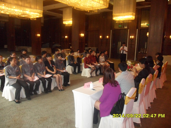 為了更好了解我系實(shí)習(xí)生的實(shí)習(xí)狀態(tài),確保學(xué)生高質(zhì)量的完成實(shí)習(xí)任務(wù),9月22日下午,管理系主任張學(xué)鋒等一行4人前往同慶樓餐飲集團(tuán)看望在該企業(yè)實(shí)習(xí)的我院首屆“同慶班”——12級餐飲管理專業(yè)學(xué)生,并參加“同慶班”實(shí)習(xí)期第一階段總結(jié)表彰大會(huì)暨同慶班獎(jiǎng)學(xué)金發(fā)放儀式。下午2:30分,實(shí)習(xí)總結(jié)表彰大會(huì)暨獎(jiǎng)學(xué)金發(fā)放儀式在同慶樓廬州府大酒店同慶廳隆重舉行。系主任張學(xué)鋒、黨總支副書記錢曼麗、同慶樓人力資源中心經(jīng)理王美鳳、招聘部經(jīng)理曹麗娜、12級餐飲管理專業(yè)輔導(dǎo)員江亮、校內(nèi)實(shí)習(xí)指導(dǎo)老師劉婷及12級餐飲管理專業(yè)全體實(shí)習(xí)學(xué)生參加了大會(huì)。大會(huì)由同慶樓餐飲集團(tuán)培訓(xùn)部經(jīng)理洪梅主持。