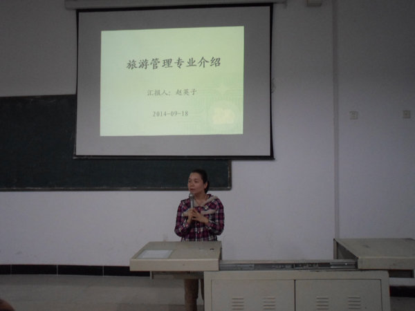 活動(dòng)開始,首先,由徐國成老師介紹工商企業(yè)管理專業(yè)在市場上所占優(yōu)勢并提出未來在20年內(nèi)存在工商管理人才的巨大缺失,教導(dǎo)新同學(xué)要明確自己的發(fā)展方向和提高專業(yè)能力。接著,由趙英子老師對旅游、餐飲、會(huì)展三大專業(yè)做整體介紹,在使同學(xué)們了解專業(yè)的同時(shí),也明確就業(yè)方向。楊志仁教授對此次活動(dòng)做重要補(bǔ)充,他鼓勵(lì)同學(xué)們要對自己的專業(yè)及以后的就業(yè)有信心,同時(shí),建議在校期間積極參加專升本考試。