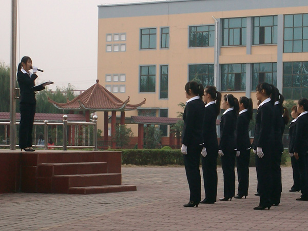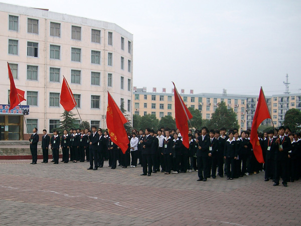 升旗儀式由團(tuán)總支書記畢科學(xué)老師主持。伴隨一聲嘹亮的口號(hào)聲“立正”國(guó)旗護(hù)衛(wèi)隊(duì)成員英姿颯爽,精神飽滿的踏著整齊的步伐,莊嚴(yán)地進(jìn)入廣場(chǎng)。當(dāng)國(guó)歌響起時(shí),全場(chǎng)肅立,五星紅旗迎風(fēng)飄揚(yáng)。學(xué)生代表郝晶晶的莊嚴(yán)宣誓,展示了外語(yǔ)系學(xué)生朝氣蓬勃,積極向上的精神風(fēng)貌。