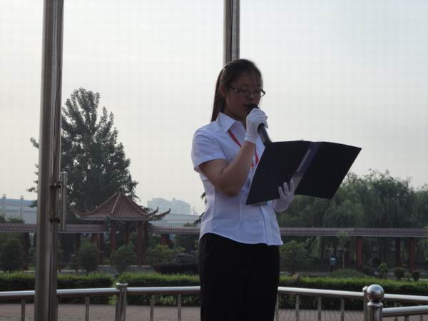本次升旗儀式由外語(yǔ)系學(xué)生會(huì)成員殷咪咪同學(xué)主持。伴隨著明媚的陽(yáng)光、涼爽的清風(fēng),外語(yǔ)系國(guó)旗護(hù)衛(wèi)隊(duì)成員昂首闊步進(jìn)入會(huì)場(chǎng)。學(xué)生代表張敏同學(xué)帶領(lǐng)廣大同學(xué)們?cè)趪?guó)旗下莊嚴(yán)宣誓,一定要努力學(xué)習(xí)、報(bào)效祖國(guó)。充分展示了外語(yǔ)系學(xué)生良好的精神風(fēng)貌。