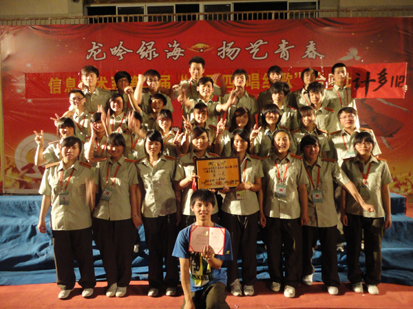 各參賽班級(jí)服裝整齊,精神飽滿,歌聲嘹亮,上下場(chǎng)隊(duì)列有序,比賽精彩紛呈。特別是動(dòng)漫112班的《愛因?yàn)樵谛闹小?、?jì)多111班的《明天會(huì)更好》把活動(dòng)氛圍推向高潮。尤其是計(jì)多112班全班學(xué)生身穿軍服、激情昂揚(yáng)唱響《保衛(wèi)黃河》,氣勢(shì)磅礴,現(xiàn)場(chǎng)報(bào)以雷鳴般的掌聲。最終,計(jì)多112班榮獲一等獎(jiǎng),動(dòng)漫112班榮獲二等獎(jiǎng)的;計(jì)多111班和計(jì)網(wǎng)112班榮獲三等獎(jiǎng)。