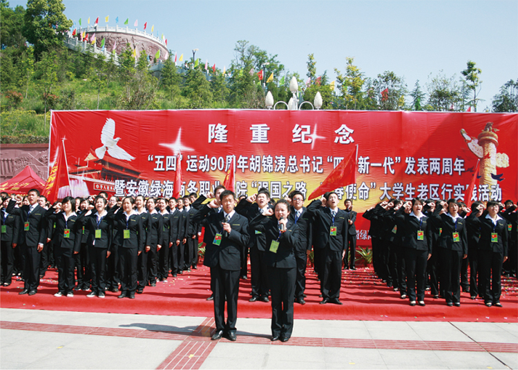 綠海學(xué)子在金寨縣紅軍廣場(chǎng)上宣讀《學(xué)生宣言》